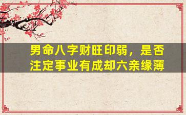 在八字命理中,"财旺印弱"确实是一种常见的格局特征,但具体影响需结合整体命局和用神平衡来综合分析,不能简单断言"事业有成却六亲缘薄"。以下是专业角度的解析: