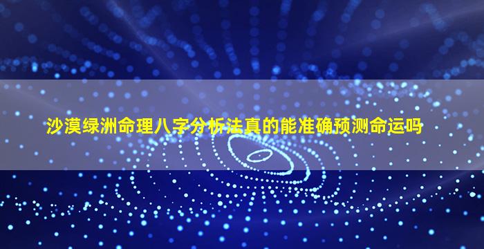 关于“沙漠绿洲命理八字分析法”是否能准确预测命运,需要从科学、传统文化和社会心理等多个角度理性分析: