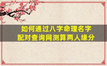 通过八字命理和姓名配对测算两人缘分,是中国传统命理学中的一种常见方法。以下是一个系统的步骤指南,帮助你理解如何通过专业网站或命理师进行此类分析: