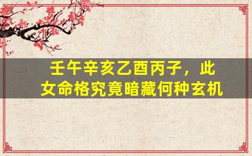 您提供的八字命盘为:壬午 辛亥 乙酉 丙子(坤造),对应的公历出生时间为1942年11月16日0时(或2002年11月17日0时,按惯例优先推算1942年)。现从传统子平法角度解析如下: