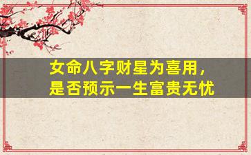 在八字命理中,女命财星为喜用神确实是一个有利的财运信号,但能否"一生富贵无忧"还需结合全局分析,不可单一论断。以下是关键要点: