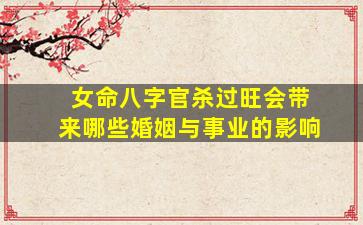 在八字命理中,女命官杀过旺(正官、七杀星强旺且无制化)确实会对婚姻和事业产生显著影响,需结合具体八字结构分析。以下是常见的命理特征及潜在影响: