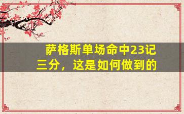 历史纪录:NBA单场三分命中数的个人纪录是14记,由勇士队的克莱·汤普森(2018年)和公牛队的扎克·拉文(2023年)共同保持。萨格斯职业生涯单场三分命中数最高为7记(截至赛季)。