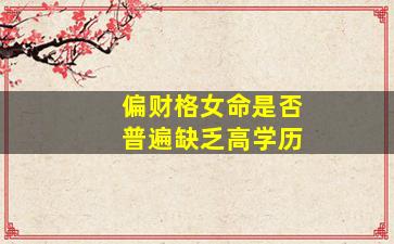 关于“偏财格女命是否普遍缺乏高学历”的问题,需要从命理学和现实角度综合分析,避免过度简单化的结论: