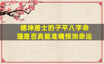 关于德坤居士的子平八字命理是否能准确预测命运的问题,需要从命理学的本质、科学性和实际应用等多个角度理性分析: