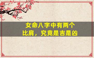 在八字命理中,比肩(与日主相同的五行,阴阳同性)代表竞争、独立、朋友或同辈关系。女命八字中出现两个比肩,其吉凶需结合整体命局和用神平衡来综合判断,以下为具体分析:
