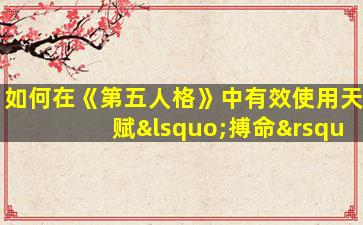 在《第五人格》中,天赋"搏命挣扎"(通称“搏命”)是求生者天赋树中的重要技能,合理使用能极大提升团队生存概率。以下是有效使用该天赋的详细攻略: