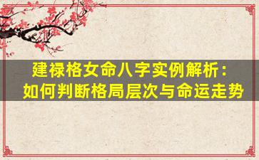 建禄格是八字命理中的一种特殊格局,指出生日天干在月令处于临官(禄)位置,如甲木日主生于寅月、乙木日主生于卯月等。这种格局往往代表命主天生具备独立性和竞争力,但格局层次高低还需结合全局分析。以下通过一个女命实例解析建禄格的判断方法: