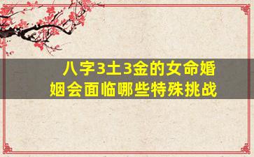 根据八字命理学,命局中“3土3金”形成特殊的五行格局(土金旺而其他五行较弱),女命的婚姻可能会面临以下潜在挑战及调整建议: