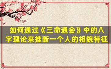 《三命通会》作为明代命理学经典,通过八字(年、月、日、时四柱干支)分析人的命运,其中也包含对相貌特征的推断。以下是基于其理论的相貌分析方法: