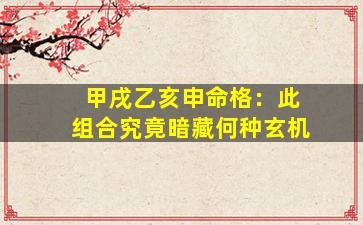 关于“甲戌乙亥申命格”的玄机,需从天干地支、五行生克、纳音神煞等多维度解析。此组合涉及命理学的深层逻辑,以下为关键点拆解: