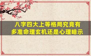 关于八字命理中的“四大上等格局”究竟是玄学命理的奥秘还是心理暗示的产物,这一问题涉及传统文化、统计学、心理学等多个维度,需要从以下几个方面理性分析: