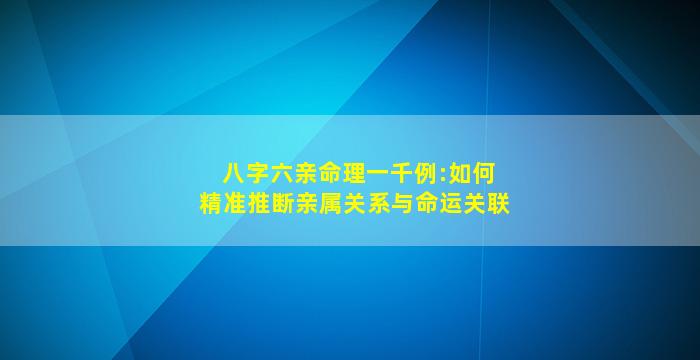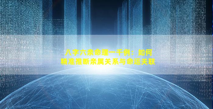 《八字六亲命理一千例:如何精准推断亲属关系与命运关联》是探讨传统命理学中亲属关系与个人命运交互作用的专业课题。以下从理论框架、分析方法及实例逻辑三个层面展开说明:
