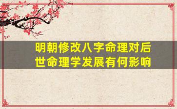 明朝对八字命理学的修改和规范化对后世命理学的发展产生了深远影响,主要体现在以下几个方面: