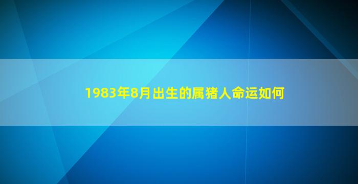 根据中国传统的生肖命理和八字学说,1983年8月出生的属猪人(农历癸亥年)命运解析如下,但需注意,以下内容仅为传统文化角度的概括,个人命运受多种因素影响,仅作参考: