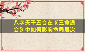 在《三命通会》中,天干五合(甲己合化土、乙庚合化金、丙辛合化水、丁壬合化木、戊癸合化火)对命局层次的影响主要体现在以下几个方面,需结合合化成功与否、五行喜忌及命局结构综合判断: