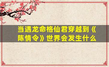 故事梗概龙君穿越:上古龙君萧云澜在仙界大战中坠入时空裂隙,穿越到《陈情令》世界的乱葬岗,被魏无羡发现。失去法力的他外表是个俊美青年,却拥有非凡气质。