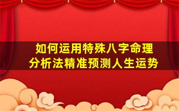 运用特殊八字命理分析法(又称“四柱预测法”)预测人生运势,是一门结合天干地支、五行生克、神煞格局等复杂体系的传统学问。以下从专业角度分步骤解析其核心逻辑与操作方法,供参考学习: