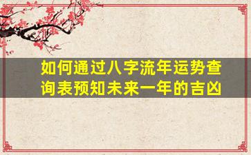 通过八字流年运势查询表预知未来一年的吉凶,是传统命理学中常见的预测方法,其核心是通过分析个人八字与流年(当前年份)干支的相互作用,判断运势变化。以下是具体步骤和原理: