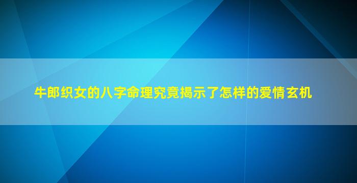 关于牛郎织女传说的八字命理解读,虽属虚构故事的衍生分析,但可以从中国命理学角度进行趣味性探讨。以下为基于传说背景的象征性解析: