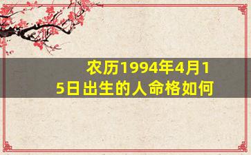 根据传统命理学(如八字、紫微斗数等),一个人的命格需结合出生年、月、日、时的天干地支(共八个字)来综合分析。由于您提供的日期仅为农历1994年4月15日,未包含具体出生时辰,以下为初步推算(默认子时,即23:00 1:00),但需注意时辰不同可能导致命局变化: