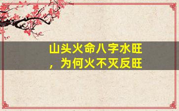 在八字命理中,"山头火命"属于纳音五行中的一种,而"水旺火不灭反旺"的现象看似矛盾,实则可以通过五行生克、命局结构和气机流通来解析。以下是可能的原因: