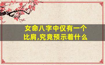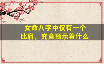 在八字命理中,比肩(与日主相同的五行,阴阳同性)代表同辈、朋友、竞争、自我意识等。女命八字中仅有一个比肩,其具体含义需结合全局分析,但通常可参考以下解读方向: