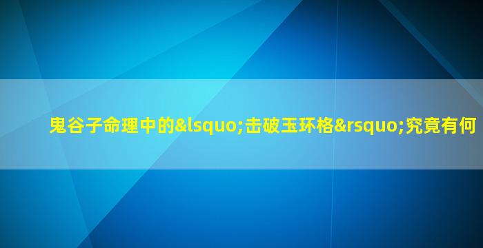 关于“击破玉环格”的命理玄机,目前可考的传统命理学典籍(如《渊海子平》《三命通会》等)及主流鬼谷子相关文献中均无明确记载,这一名称很可能属于民间命理流派或现代命理创作中的概念。不过,结合传统命理学的逻辑和“玉环”“击破”的意象,可尝试从学理角度进行以下推测性解读: