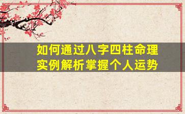 通过八字四柱命理解析个人运势,需要系统性地分析年、月、日、时四柱的天干地支组合,结合五行生克、十神关系、大运流年等要素。以下是具体步骤和实例解析方法: