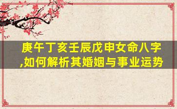 根据您提供的八字(庚午、丁亥、壬辰、戊申),现从五行生克、十神配置及大运流年等方面,解析婚姻与事业运势: