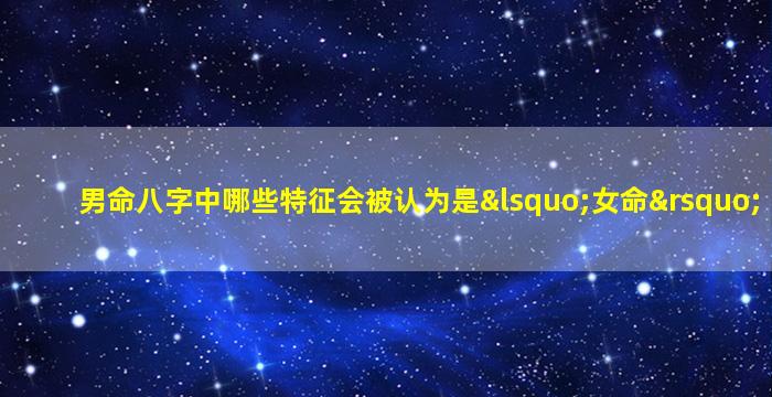 在传统八字命理学中,男命与女命的区别主要基于阴阳五行的平衡以及十神配置的差异。男命若出现某些特定特征,可能会被解读为“偏阴柔”或“类似女命”的格局,但这种说法并非绝对,而是基于对性别气质的传统刻板印象。以下是几种常被讨论的特征: