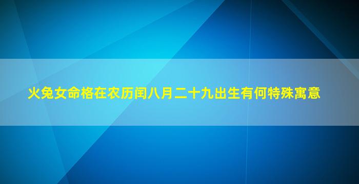 关于“火兔女命格在农历闰八月二十九出生”的寓意,需结合传统命理学中的五行、干支、闰月等因素综合分析,以下为具体解读: