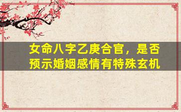 “乙庚合官”的女命婚姻确有特殊之处,但并非绝对吉凶,需结合八字全局判断。若合化为喜用、无冲克,多为良缘;若合化不利或官星受损,则需在感情中更主动调整平衡。命理是趋势,后天的人为经营(如沟通、择偶观念)同样关键。