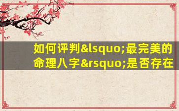 关于“最完美的命理八字”是否存在公认的排名标准,这一问题需要从命理学的理论体系、文化背景和实际应用等多个角度来分析。以下是综合性的解答: