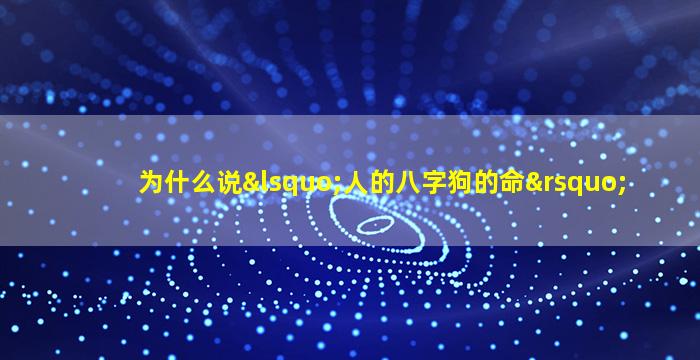“人的八字,狗的命”是一句民间俗语,结合了传统命理学和现实观察,主要表达以下几种含义: