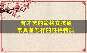 有才艺天赋的女孩,其性格特质往往与她们的创造力、敏感度和自我表达方式密切相关。以下是从命理、心理学和现实观察中的常见特质: