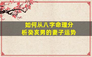 从八字命理分析癸亥男的妻子运势,需结合日主(出生日的天干)与其他干支的五行生克、十神关系(尤其是财星、配偶宫)、以及大运流年的影响。以下是具体分析步骤和要点: