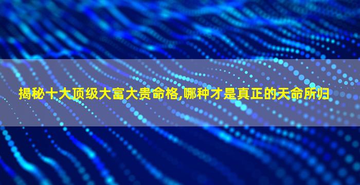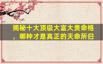 关于“大富大贵命格”的话题,通常涉及命理学中的八字、紫微斗数、面相学等传统学说。不同流派对“富贵命”的判断标准各有侧重,但普遍认为真正的大富大贵需兼具先天命格和后天运势的配合。以下是命理学中常见的几种被认为是顶级富贵格局的简析,供参考(需理性看待,命理仅为传统文化探讨):