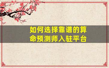 选择靠谱的算命预测师入驻平台需要综合考虑平台资质、入驻规则、用户反馈等多方面因素。以下是一些关键步骤和建议,帮助您筛选出高质量的预测师和平台: