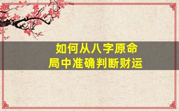 从八字命理中判断财运,需结合十神、五行生克、宫位及大运流年等多维度分析。以下是系统性的判断方法: