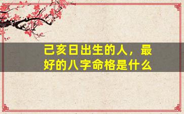 在八字命理学中,判断一个人的命格优劣需结合日柱(己亥)、月令、时辰、五行生克、十神配置及大运流年等综合分析,不存在绝对“最好”的单一命格。但针对己亥日出生的人,可以从五行平衡、格局配合的角度,探讨较为理想的配置方向: