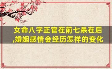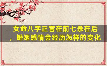在八字命理中,正官和七杀(偏官)都代表女命的夫星,但二者特性不同,正官象征稳定、正统的婚姻关系,七杀则代表偏缘、激情或不稳定的感情。当女命八字中 正官在前、七杀在后(如年柱或月柱见正官,时柱见七杀),通常暗示婚姻感情会经历以下变化: