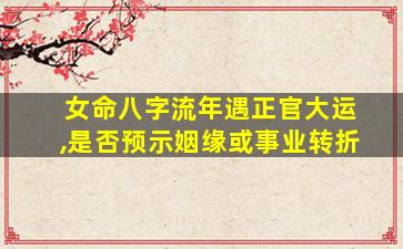 在八字命理中,女命流年遇正官大运确实常被视为重要的运势转折点,可能涉及姻缘、事业或社会地位的变动,但需结合具体命局综合判断。以下是关键分析要点: