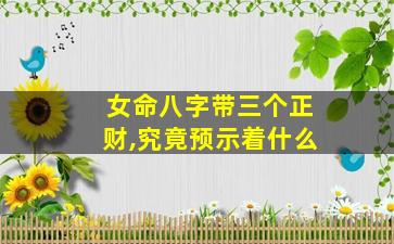 在八字命理中,正财代表稳定收入、财富积累能力,也象征女性的丈夫或婚姻状态(传统命理中女命以正财为夫星的间接体现)。女命八字带三个正财,需结合全局分析,但通常有以下几种解读方向: