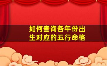 查询各年份出生对应的五行命格,主要依据中国传统历法(干支纪年)和五行学说。以下是具体方法和步骤:
