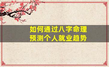 通过八字命理预测个人就业趋势,是中国传统命理学中的一种常见应用,主要依据个人的生辰八字(年、月、日、时的天干地支组合)分析五行生克、十神配置、大运流年等要素,推断其职业倾向、发展时机和潜在挑战。以下是具体方法和步骤: