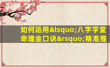 运用“八字学堂命理金口诀”精准推算人生运势,需结合传统命理学中的四柱八字(年、月、日、时)和五行生克理论,辅以口诀中的关键法则。以下是分步骤的解析: