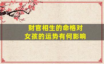 在八字命理中,"财官相生"是一种被认为对运势有利的格局,尤其对女性而言,传统命理常将"官星"与事业、婚姻等联系起来。以下是这一命格对女孩运势的潜在影响分析: