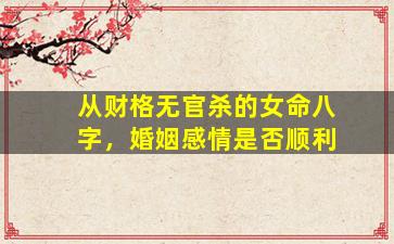 从财格无官杀的女命,婚姻感情先天缘分较浅,但并非注定不顺,需结合大运流年动态分析。若大运能引动官杀且配合得当,仍可成婚;反之则需主动调整心态,通过现实选择和环境适应来补足命局的不足。命理是趋势而非定数,个人的选择和经营同样重要。