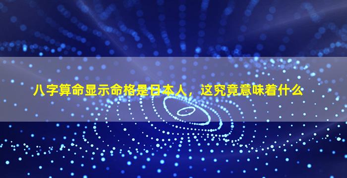 “八字算命显示命格是日本人”这一说法在传统命理学中并不常见,可能是对某些命理特征的比喻或现代网络文化中的调侃。以下是几种可能的解释和建议: